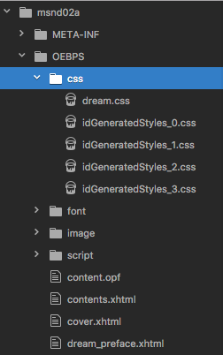 Remember, if you want to ‘roundtrip’ back to InDesign then you will need to keep a record of these changes so that you can re-instate them, when InDesign overwrites your ePUB file. It is possible to add your own CSS at export time, but all other changes (to the package documents, toc.xhtml, landmarks etc.)- these will be lost at export time.